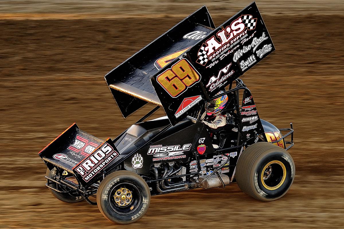 Kaeding and Caeden Steele of Fresno banged wheels into turn one on the opening lap, and both were briefly off the ground with all four wheels up. Kaeding kept control of the No. 69 entry to lead lap one. Kaeding then bounced through the first corner again, allowing Steele to soar underneath and lead lap two.